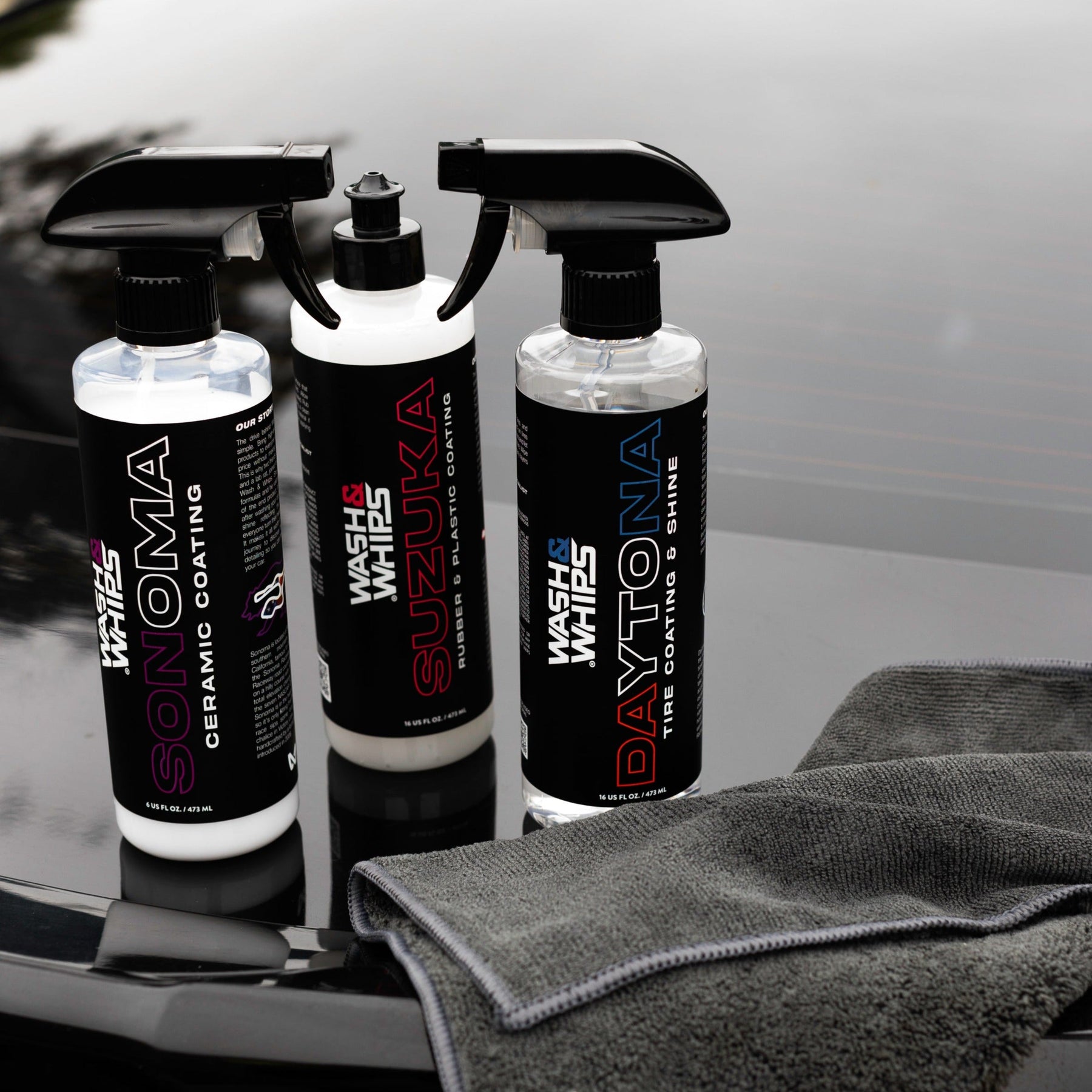 Mejora el aspecto de tu coche con el kit de sellado exterior Wash&Whips, un componente integral de nuestro reconocido sistema de detallado de 3 pasos: lavado, limpieza y sellado.
